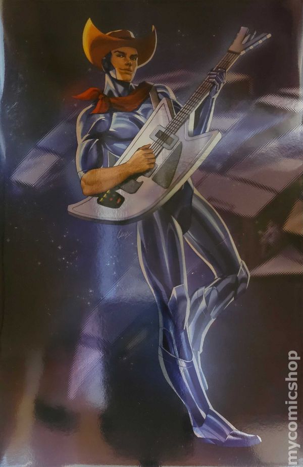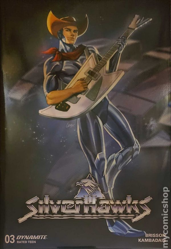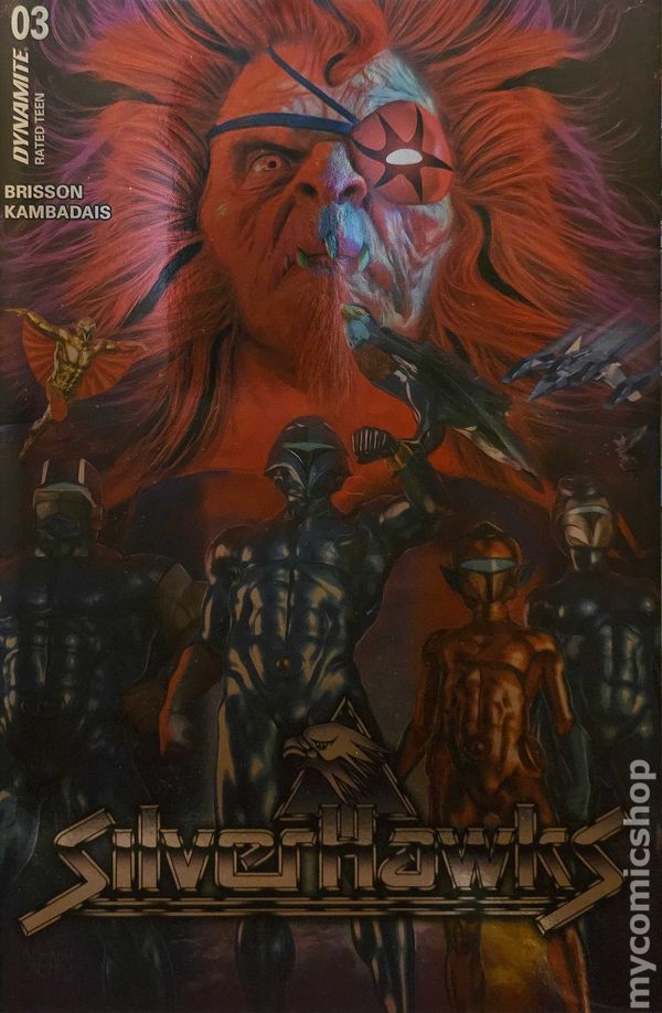Virgin Foil. Written by Ed Brisson. Art by George Kambadais. Cover by Mark Spears. On the Planet of Mimes, the villainous Windhammer is wreaking havoc, devestating the landscape with an ever-escalating series of violent storms. Unable to stem the onslaught, Steelheart and Steelwill work tirelessly to help evacuate the Mimes while waiting for reinforcements. But when Condor and the SilverHawks arrive to take down the threat, Windjammer is ready with reinforcements of his own - and in the aftermath of the climactic battle, the SilverHawks and their legacy will be forever changed! 32 pages, full color. Rated T Cover price $29.99.
