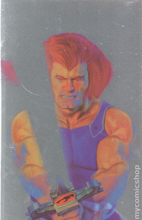 Virgin Foil Cover. Written by Declan Shalvey. Art by Joe Mulvey. Cover by Mark Spears. After successfully repelling Mumm-Ra's all-out attack on the Cat's Lair with the help of Calica and her new android allies, the ThunderCats are left with a single burning question: Where is Lion-0? The answer to that mystery is finally revealed here, as the brash young leader escapes from Mumm-Ra's captivity with the help of a mysterious robed stranger only to find himself alone on an alien world, fighting for his life! 32 pages, full color. Rated T Cover price $4.99.