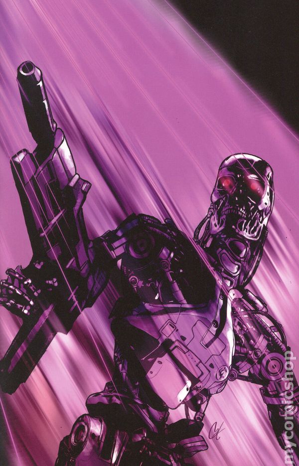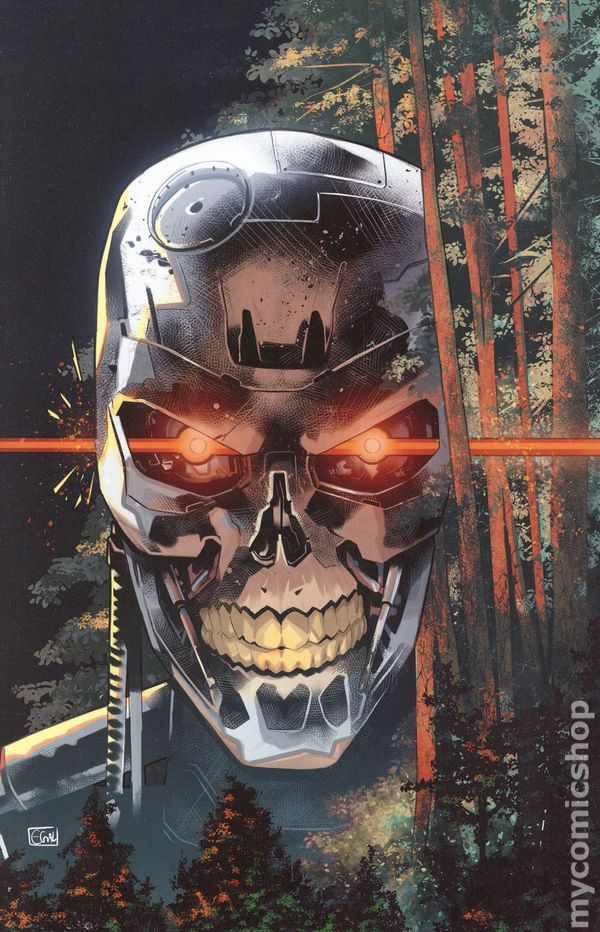 Limited 1 for 20 Retailer Incentive Variant Cover. Written by Declan Shalvey. Art by Colin Craker. Cover by Declan Shalvey. NO FATE BUT WHAT THEY MAKE! The story of the darkest days of the war against the machines, and the grizzled veteran who helped guide John Conner to his ultimate victory over Skynet, comes full circle in this issue, leading inexorably to a final, fatal confrontation - or so it might seem! The enhanced neural nets of author DECLAN SHALVEY and artist COLIN COKER descend into the uncanny valley with The Terminator #8 - fortified by flawlessly fabricated covers by SHALVEY, EDWIN GALMON, CAT STAGGS, and DAVID COUSENS! 32 pages, full color. Rated T+ Cover price $4.99.