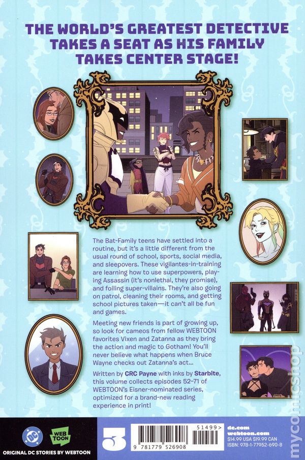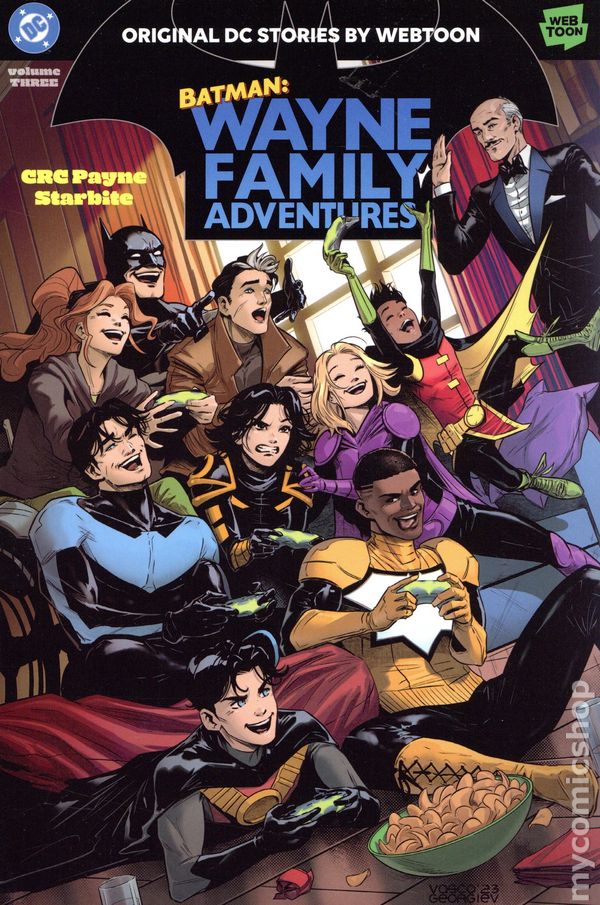 Volume 3 - 2nd and later printings. Written by CRC Payne. Art by Starbite, Toby Fan, Geoniya Acuna, Rachel Koo, and Maria Li. Cover by Vasco Georgiev. Season two of the smash-hit WEBTOON series starts here! When your superhero life is just as busy as your personal life, there's never a dull moment in the Bat-Fa eries, optimized for a brand-new reading experience in print! Softcover, 208 pages, full color. Cover price $14.99.