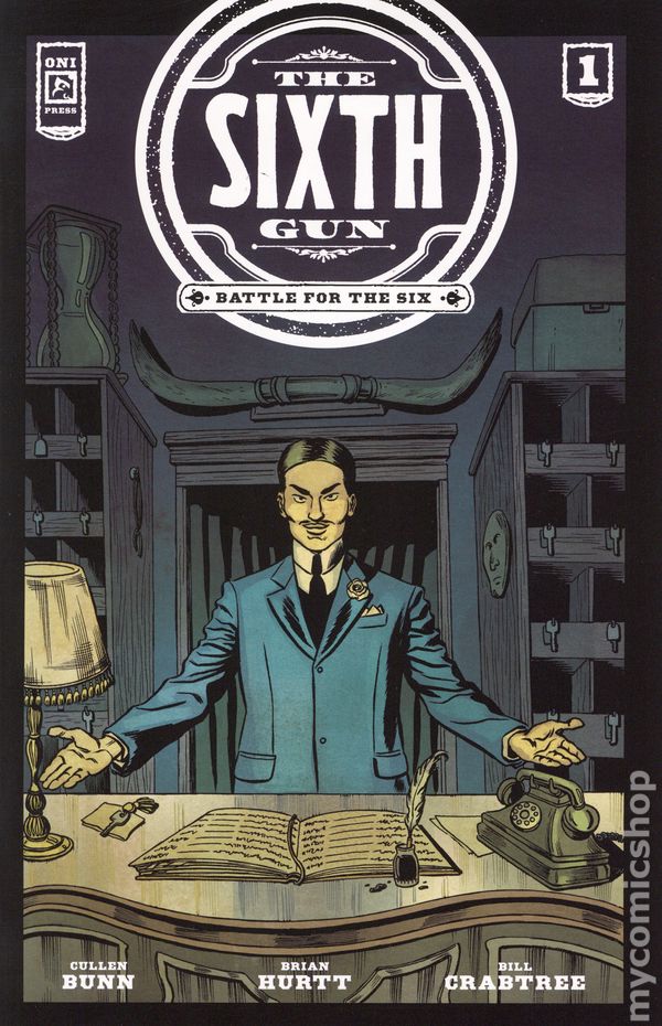 Written by Cullen Bunn. Art by Brian Hurtt. Cover by Brian Hurtt. AFTER 15 YEARS AND A MILLION BULLETS . . . THE SIXTH GUN IS REBORN! In 1866, out of the ruins of the failed Confederate uprising, a race to claim six objects of unfathomable occult power began, thrusting the fate of humanity into the hands of an ordinary young woman and a hard-nosed gunslinger who, together, were our last, best hope to forestall Armageddon. They prevailed, but at a terrible price. But that was then. This is now. Three decades later, as the gears of a new millennium begin to grind on the cusp of the 20th century, THE SIXTH GUN is about to be REBORN once more—as it has been countless times across the eons. This time, however, a brigade of familiar fighters lies in wait to meet THE SIXTH GUN's nigh-limitless power head on . . . alongside a secret cabal that wish to harness its unspeakable power to incept a new century of war, genocide, and suffering. Only one can survive to claim victory. THE BATTLE FOR THE SIX starts now! In celebration of 15 years of one of the most beloved smash-hits in the history of creator-owned comics, return to the Eisner Award–nominated world of THE SIXTH GUN as co-creators Cullen Bunn (Harrow County) and Brian Hurtt (The Midnite Show) reunite for an all-new, self-contained entry point into the acclaimed saga that fantasy icon Michael Moorcock calls an epic in its own right—as told across three extra-sized, ad-free issues in a deluxe prestige format! 32 pages, full color. Rated M Cover price $5.99.