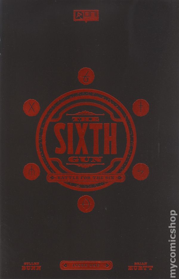 Limited 1 for 20 Retailer Incentive Variant Cover. Written by Cullen Bunn. Art by Brian Hurtt. Foil Stamp Cover. AFTER 15 YEARS AND A MILLION BULLETS . . . THE SIXTH GUN IS REBORN! In 1866, out of the ruins of the failed Confederate uprising, a race to claim six objects of unfathomable occult power began, thrusting the fate of humanity into the hands of an ordinary young woman and a hard-nosed gunslinger who, together, were our last, best hope to forestall Armageddon. They prevailed, but at a terrible price. But that was then. This is now. Three decades later, as the gears of a new millennium begin to grind on the cusp of the 20th century, THE SIXTH GUN is about to be REBORN once more—as it has been countless times across the eons. This time, however, a brigade of familiar fighters lies in wait to meet THE SIXTH GUN's nigh-limitless power head on . . . alongside a secret cabal that wish to harness its unspeakable power to incept a new century of war, genocide, and suffering. Only one can survive to claim victory. THE BATTLE FOR THE SIX starts now! In celebration of 15 years of one of the most beloved smash-hits in the history of creator-owned comics, return to the Eisner Award–nominated world of THE SIXTH GUN as co-creators Cullen Bunn (Harrow County) and Brian Hurtt (The Midnite Show) reunite for an all-new, self-contained entry point into the acclaimed saga that fantasy icon Michael Moorcock calls an epic in its own right—as told across three extra-sized, ad-free issues in a deluxe prestige format! 32 pages, full color. Rated M Cover price $5.99.