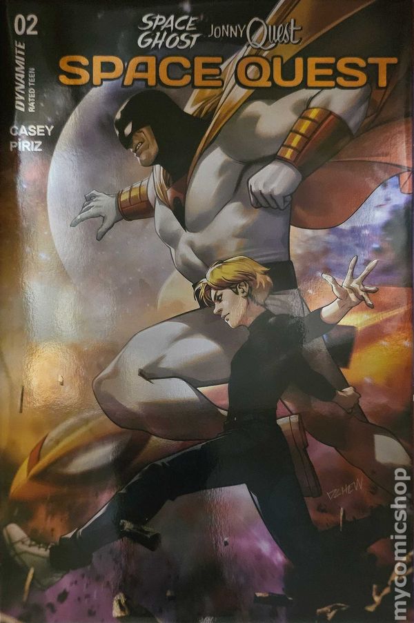 Virgin Foil Cover. Written by Joe Casey. Art by Sebastian Piriz. Cover by Mark Spears. Jonny Quest and Hadji have travelled into the far-flung future and face to face with one peeved Space Ghost. Now the mystery of how takes center stage. Meanwhile, back in 1960s Nevada, Space Ghost's companions Jan and Jace find themselves visitors of the mysterious Area 51-luckily for them, Dr. Quest is on hand to plumb the mystery of their own displacement. Now if they can just stay one step ahead of the military. And once again in the future, Jonny and Hadji get their first look at one of Space Ghost's deadliest foes. 32 pages, full color. Rated T Cover price $29.99.