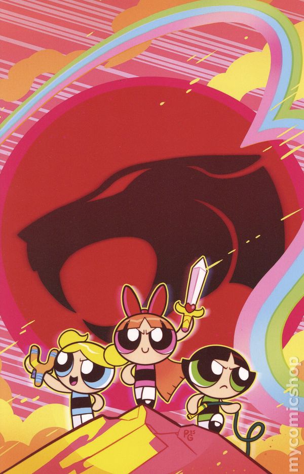 Limited 1 for 20 Retailer Incentive Variant Cover. Written by Paulina Ganucheau. Art by Coleman Engle. Cover by Paulina Ganucheau. In the greatest crossover since peanut butter met jelly, The Powerpuff Girls travel from Townsville to Third Earth and discover the world of the ThunderCats! After being trapped in a runaway rocket by Mojo Jojo, the titanic trio find themselves on a strange planet where their super-powers don't work. Luckily, someone named Snarf is there to provide a situation report and wouldn't you know it, there's evil that needs defeating! But without their Chemical X-enhanced abilities, what can Bubbles, Blossom, and Buttercup do against a foe like Mumm-Ra? Find out as writer PAULINA GANUCHEAU and artist COLEMAN ENGLE open up the Treasures of Thundera in the first issue of ThunderCats/The Powerpuff Girls featuring instantly iconic covers from GANUCHEAU and ENGLE as well as CORAN KIZER STONE, SAOWEE, and NICOLETTA BALDARI! 32 pages, full color. Rated T Cover price $4.99.