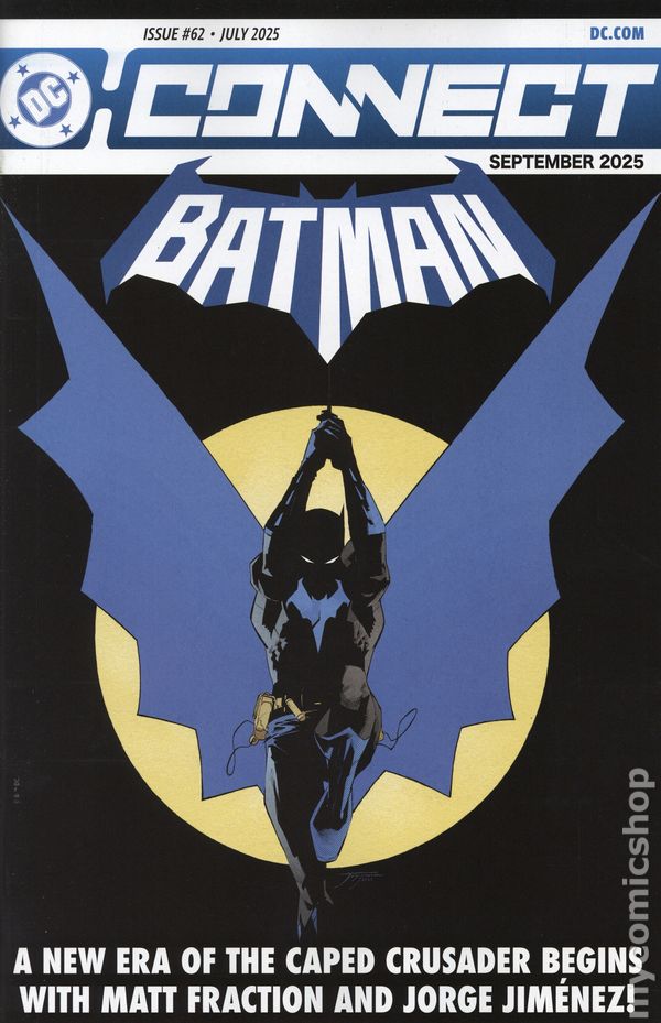 July 2025 DC catalog for September 2025 releases and beyond. Cover by Jorge Jimenez (Batman). Highlights from this issue: Batman #1 preview art and costume design by Jorge Jimenez; Red Hood #1 preview art by Jeff Spokes. 56 pages, full color. Cover price $0.25.