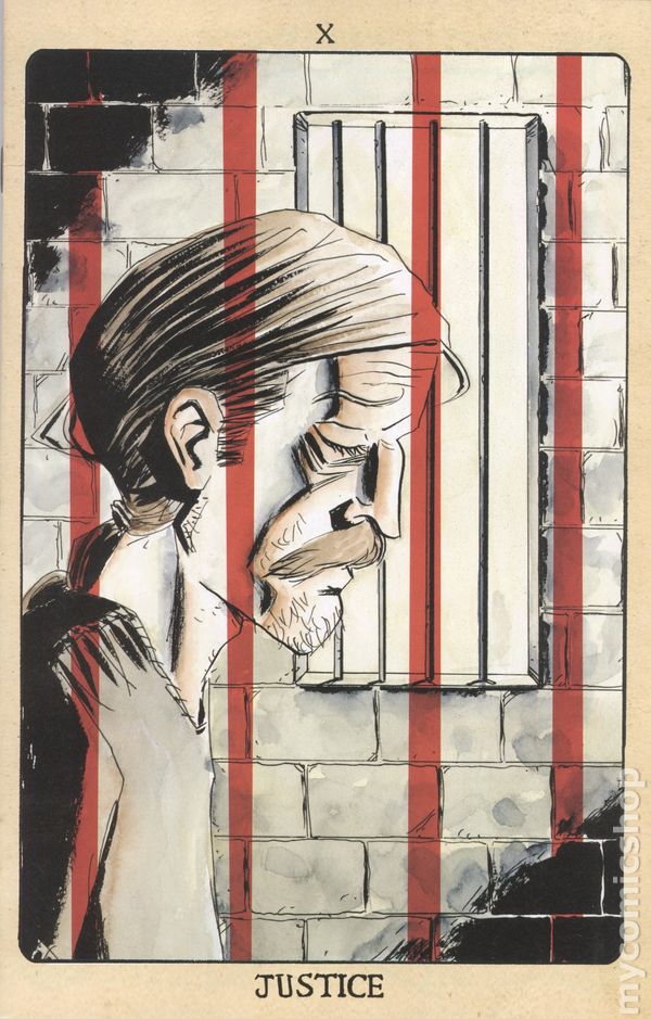 Limited 1 for 25 Retailer Incentive Variant Cover. Written by Jeff Lemire. Art by Jeff Lemire. Cover by Casper Wjingaard. The ballad of Budd St. Pierre continues! Locked up, Budd has plenty of time to reflect on his past mistakes. Though he finds temporary solace in his routine, as well as exploring Tarot, the fate of his relationship with his wife and daughter is uncertain. 28 pages, full color. Rated T+ Cover price $4.99.