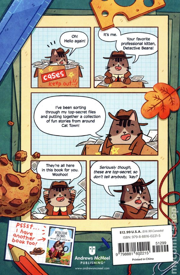 1st printing. Story and art by Li Chen. Detective Beans is back on the case! In this series of mysteries and adventures, the world's cutest cat detective comes to the aid of her fellow villagers, searching for a cooky thief (with surprising results!), aiding a deceptive duck in the recovery of lost goods, and even doing his best to help a confused bear prove that the moon is made of cheese. In addition to these small capers, Adventures in Cat Town features behind-the-scenes footage of the crime-solving documentary directed by Beans best friend, Biscuits, as well as comics, stories, and even horoscopes illustrated by Beans himself. Softcover, 6-in. x 9-in., 208 pages, full color. Cover price $12.99.