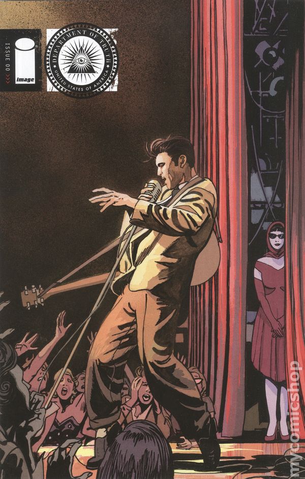 Written by James Tynion IV, Scott Snyder. Art by Martin Simmonds, Joshua Hixson. Cover by Martin Simmonds. THE DEPARTMENT OF TRUTH Celebrates its 5th Anniversary with an Extra-length #0 Issue! A new day has dawned at the Department of Truth. Lee Harvey Oswald and his ruthless new recruits are ready to do whatever it takes to make the agency great again. Dont miss this critical turning point in the Eisner-nominated series! And—for the first time ever—DoT welcomes celebrated guest writer SCOTT SNYDER (Absolute Batman) and acclaimed artist JOSHUA HIXSON (THE DEVIANT) to tell the secret history of Elvis in the first of a three-part back-up story! 40 pages, full color, rated M. Cover price $4.99.