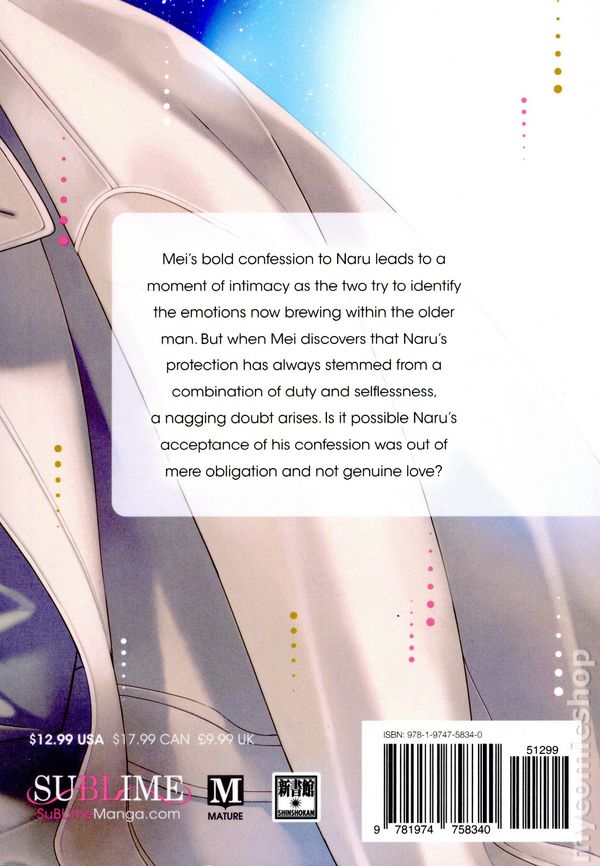 Volume 3 - 1st printing. Story and art by Yuu Minaduki. Translated by Christine Dashiell. Mei's bold confession to Naru leads to a moment of intimacy as the two try to identify the emotions now brewing within the older man. But when Mei discovers that Naru's protection has always stemmed from a combination of duty and selflessness, a nagging doubt arises. Is it possible Naru's acceptance of his confession was merely out of obligation and not genuine love? Softcover, 5-in. x 7-in., 226 pages, B&W. Mature Readers Cover price $12.99.