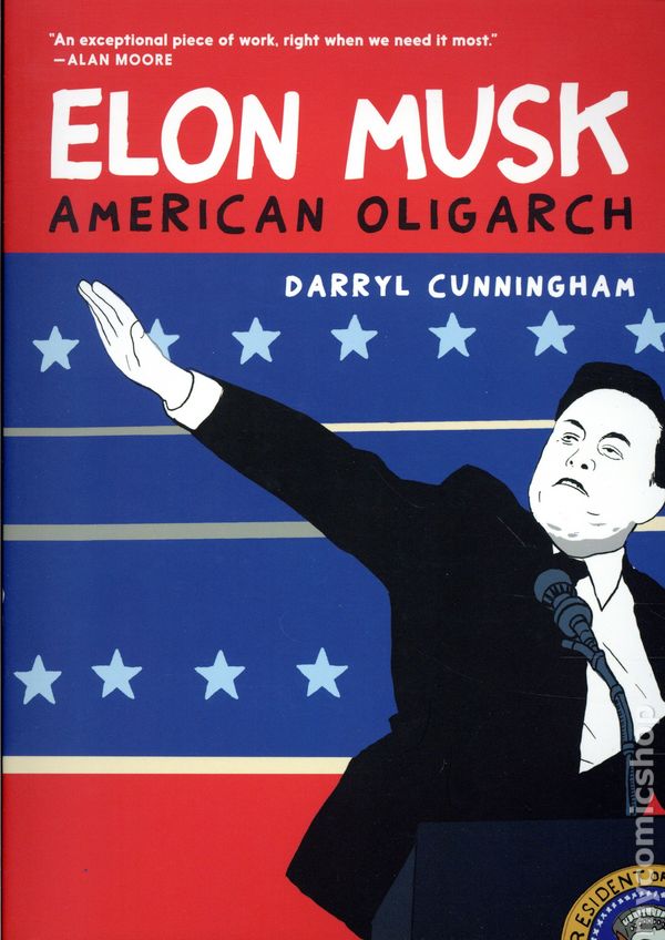 1st printing. Story and art by Darryl Cunningham. An unvarnished, critical graphic biography of the tech innovator and presidential confidant by the author/illustrator of Putins Russia: The Rise of a Dictator and Billionaires: The Lives of the Rich and Powerful. Darryl Cunninghams new graphic biography of Elon Musk is a riveting deep-dive into the audacious mind and tumultuous journey of the worlds richest man. Using his signature pictographic style—clean lines, vivid colors, and lean panel compositions—Cunningham peels back the layers of myth around Musk to deliver a timely portrait that is provocative and informative. Spanning several generations, the book traces Musks journey from his family roots in South Africa and his grandfathers role in the Technocracy Movement to his current position at the apex of tech power and far-right politics. From Musks early education and influences, the creation of PayPal, and the meteoric rise of Tesla and SpaceX thanks to millions in government handouts, to his ascension as a dark MAGA influencer and kingmaker, Elon Musk: American Oligarch captures the tension, tumult, and chaos in which oligarchs thrive today. Cunninghams award-winning clarity and style sparkle as he presents freewheeling financial and engineering concepts used by startups and tech companies. This fast-paced biography reveals the complex interactions of visionary ideas, relentless drive, and unyielding ambition. Elon Musk: American Oligarch offers a fresh, unvarnished look at Musks rise, aggressive leadership style, and appetite for risk-taking that have propelled him into a unique position as an unelected private business owner with unprecedented access to political power. Softcover, 6 1/2-in. x 9-in., 208 pages, full color. Cover price $24.95.