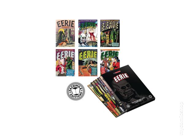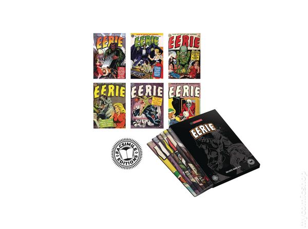 Set #1 - Includes Eerie (1947 Avon One-Shot) Facsimile Edition and Eerie (1951 Avon Series) Facsimile Edition #1-5. Collect the first 5 issues of the legendary Eerie series by Avon Publications plus Eerie Comics! For the first time ever, enjoy 6 facsimile editions in one premium slipcase! Featuring issue 1 of Eerie Comics and the first 5 issues of Eerie, originally published by Avon in the 1950s, this collection is packed with bone-chilling tales of the supernatural. From reanimated corpses to hair-raising horrors, these stories are sure to send shivers down your spine! With iconic artists like Wally Wood, Joe Kubert, and Fred Kida contributing to over 200 pages of eerie terror, this collection delivers unbeatable bang for your buck! 6 Facsimile comics (with Slipcase), 232 pages (total), full color.