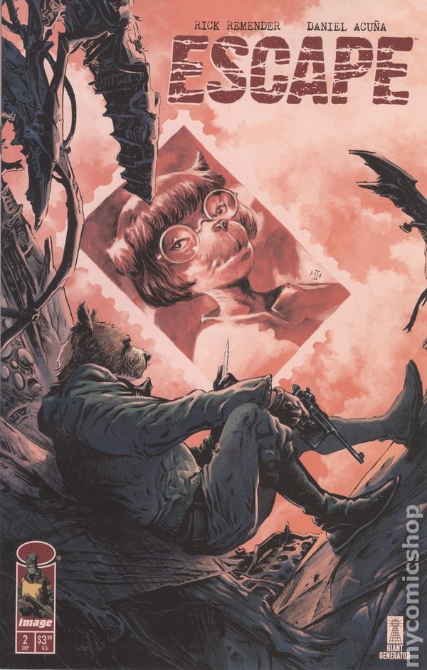 Written by Rick Remender. Art by Daniel Acuna Perez. Cover by Daniel Acuna Perez. Wounded, hunted, and running out of time, Milton Shaw has one shot left to change the course of the war: destroy the Titan Cannon before his own side drops the bomb. But as enemy patrols close in and memories of the life he left behind threaten to break him, the mission becomes more than survival—its redemption. From **RICK REMENDER **and DANIEL ACUÑA, ESCAPE barrels forward with blood, fire, and heartbreak in the war-torn world of Nuropia. 28 pages, full color. Rated T+ Cover price $3.99.