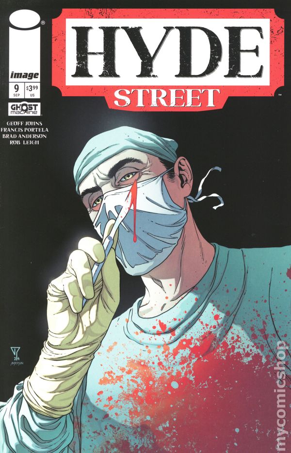 Written by Geoff Johns. Art by Francis Portela, Brad Anderson. Cover by Francis Portela, Brad Anderson. Doctor Victor Frankenstein has nothing on Hyde Streets own Doctor Archibald Ego—a disgraced plastic surgeon whose malpractice scars more than flesh...it cuts into the soul. Dragged to Hyde Street in 1997, Doctor Ego now encounters an old patient lured back by unfinished business—and a thirst for revenge. But when the scalpel turns, who becomes the real monster? And what dark connection binds the twisted doctor to the terrifying Matinee Monster? 32 pages, full color. Rated T+ Cover price $3.99.