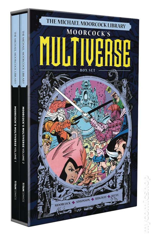 Set includes Vol. 1-2 (with Slipcase) - Printings May Vary. Written by Michael Moorcock. Art by Walt Simonson, John Ridgway, and Mark Reeve. Box Art by Walt Simonson. SLIP CASE EDITION OF THE GROUND-BREAKING SERIES WRITTEN BY THE LEGENDARY MICHAEL MOORCOCK AND ILLUSTRATED BY SOME OF THE TRUE MASTERS OF THE COMIC ARTS. This epic quest sees diverse heroes from Moorcock's sprawling Eternal Champion series united in a common quest to stop the criminal mastermind Silverskin from destroying the multiverse. Set across three unique locations and time-lines, the three story arcs follow the mutual search for the enigmatic underworld crime lord Silverskin concluding with the convergence of the three plots. Hardcover, 320 pages, full color. Mature Readers Cover price $59.99.