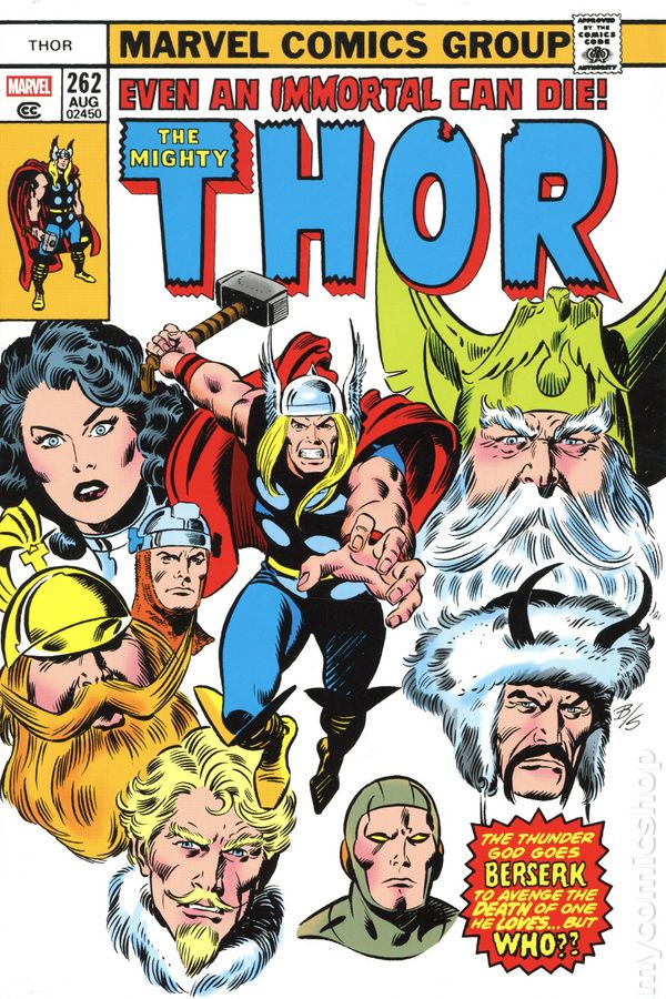 1st Edition - Volume 5 - 1st printing. Collects Thor (1962-1996 1st Series Journey Into Mystery) #229-266, Thor (1962-1996 1st Series Journey Into Mystery) Annual #5-6, Marvel Spotlight (1971-1977 1st Series) #30 and Marvel Premiere (1972-1981) #26. Written by Gerry Conway, Len Wein, Roy Thomas, Bill Mantlo, David Anthony Kraft, Steve Englehart, and Roger Stern. Art by John Buscema, Walt Simonson, Rich Buckler, Sal Buscema, Pablo Marcos, Tony Dezuniga, George Tuska, Chic Stone, Joe Sinnott. Dick Giordano, Klaus Janson, Ernie Chan, and Vince Colletta. Cover by John Buscema and Joe Sinnott. The Mighty Thor adds another volume to his saga of Asgardian adventure that set the standard for grand adventure in the Marvel manner! Thor is lucky to have Hercules at his side this time around, because Loki has teamed with Firelord in a bid to usurp Odin's throne. Meanwhile, Jane Foster has returned and Thor is torn between aiding her on Earth and the defense of Asgard. Before it's over Thor will battle the gods of Egypt to save Odin from death itself. Then, it's a battle through time (with dinosaurs!) after which Thor returns to Asgard to face the one and only Mangog, followed by a star-spanning quest. Also featuring a team-up with the Guardians of the Galaxy and the Warriors Three and Hercules in their own solo adventures! Hardcover, 904 pages, full color. Rated T Cover price $125.00.