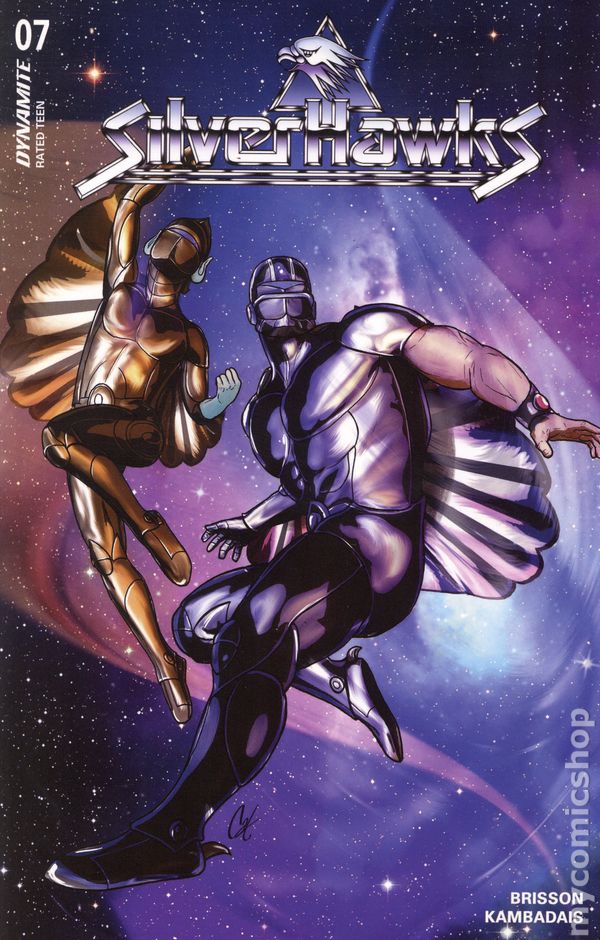 Written by Ed Brisson. Art by George Kambadais. Cover by Drew Moss. TURF WAR! As their clashes with mob boss Mon*Star and his minions continue to escalate, the green recruits of Commander Stargazer's new SilverHawks team begin to come together as an effective fighting force. But when a terrifying new menace emerges that threatens the entire Limbo galaxy, the SilverHawks' hard-earned lessons may prove to be too little - and too late! Honorary lawmen ED BRISSON and GEORGE KAMBADAIS gear up for an intergalactic rumble in SilverHawks #7 - with backup provided by celebrated cover artists JAE LEE & JUNE CHUNG, CAT STAGGS, ALESSANDRO RANALDI, DREW MOSS, LESLEY 'LEIRIX' LI, MANIX, and DAVID COUSENS! 32 pages, full color. Rated T Cover price $4.99.