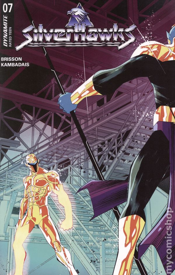 Written by Ed Brisson. Art by George Kambadais. Cover by Manix. TURF WAR! As their clashes with mob boss Mon*Star and his minions continue to escalate, the green recruits of Commander Stargazer's new SilverHawks team begin to come together as an effective fighting force. But when a terrifying new menace emerges that threatens the entire Limbo galaxy, the SilverHawks' hard-earned lessons may prove to be too little - and too late! Honorary lawmen ED BRISSON and GEORGE KAMBADAIS gear up for an intergalactic rumble in SilverHawks #7 - with backup provided by celebrated cover artists JAE LEE & JUNE CHUNG, CAT STAGGS, ALESSANDRO RANALDI, DREW MOSS, LESLEY 'LEIRIX' LI, MANIX, and DAVID COUSENS! 32 pages, full color. Rated T Cover price $4.99.