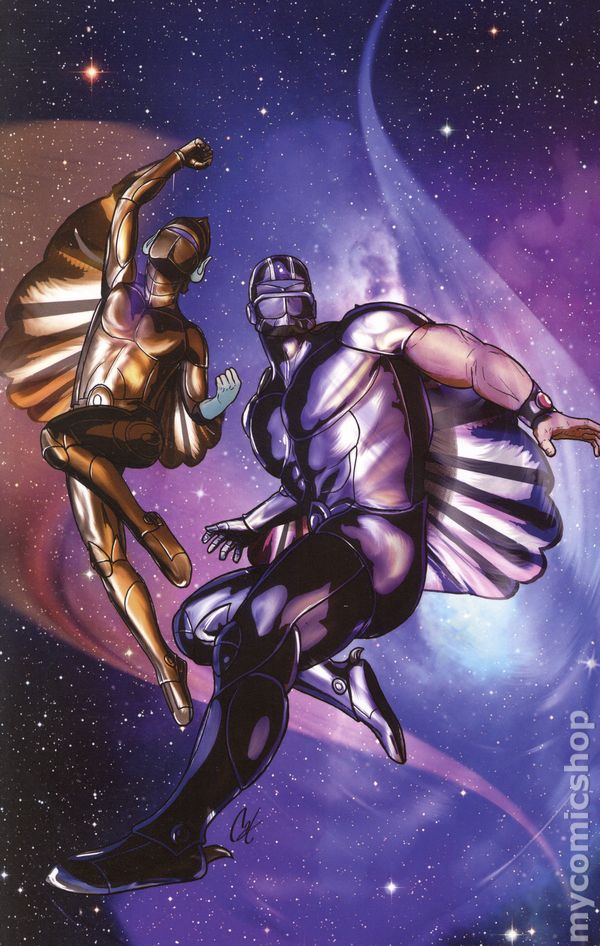 Limited 1 for 15 Retailer Incentive Variant Cover. Written by Ed Brisson. Art by George Kambadais. Cover by David Cousens. TURF WAR! As their clashes with mob boss Mon*Star and his minions continue to escalate, the green recruits of Commander Stargazer's new SilverHawks team begin to come together as an effective fighting force. But when a terrifying new menace emerges that threatens the entire Limbo galaxy, the SilverHawks' hard-earned lessons may prove to be too little - and too late! Honorary lawmen ED BRISSON and GEORGE KAMBADAIS gear up for an intergalactic rumble in SilverHawks #7 - with backup provided by celebrated cover artists JAE LEE & JUNE CHUNG, CAT STAGGS, ALESSANDRO RANALDI, DREW MOSS, LESLEY 'LEIRIX' LI, MANIX, and DAVID COUSENS! 32 pages, full color. Rated T Cover price $4.99.