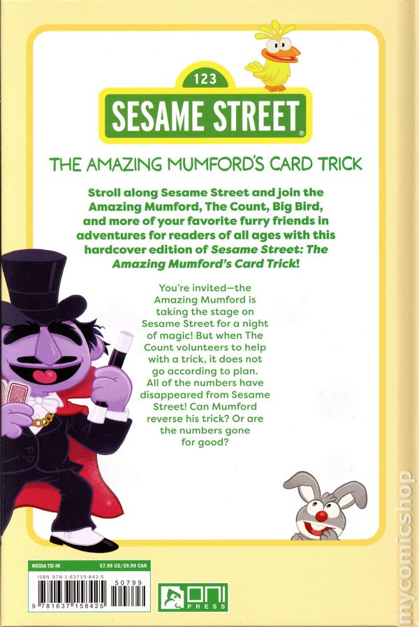 1st printing. Written by Joey Esposito. Art by Sean Dove. Cover by Erin Hunting. Stroll along Sesame Street and join The Amazing Mumford, The Count, Big Bird, and more of your favorite furry friends in adventures for readers of all ages with this hardcover edition of Sesame Street: The Amazing Mumfords Card Trick! Youre invited—The Amazing Mumford is taking the stage on Sesame Street for a night of magic! But when The Count volunteers to help with a trick, it does not go according to plan. All of the numbers have disappeared from Sesame Street! Can Mumford reverse his trick? Or are the numbers gone for good? Hardcover, 6-in. x 9-in., 24 pages, full color. All Ages Cover price $7.99.