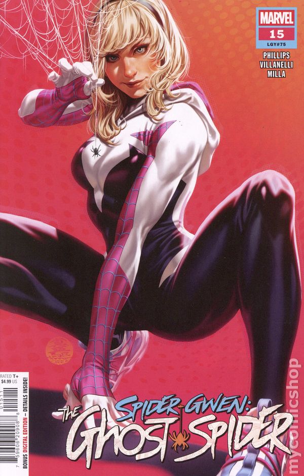 Written by Stephanie Phillips. Art by Von Randal. Cover by Kris Anka. IT'S THE END OF THE LINE! Gwen is DONE entertaining KING LOKI'S machinations! But can one Spider - even one with an incredible power boost from a Cosmic Cube - really hope to stand a chance against a god? Fortunately, unlike Loki, Gwen has allies, and her friends at the TVA have something to say about Loki trying to rebuild the universe. DON'T MISS THIS THRILLING FINAL ISSUE BEFORE A BOLD NEW BEGINNING! 32 pages, full color. Rated T+ Cover price $4.99.