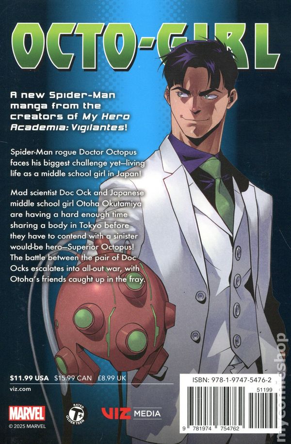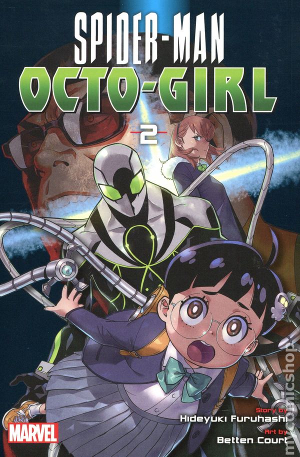 Volume 2 - 1st printing. Written by Hideyuki Furuhashi. Art and cover by Betten Court. Translated by Caleb Cook. Adapted by Molly Tanzer. Mad scientist Doc Ock and Japanese middle school girl Otoha Okutamiya are having a hard enough time sharing a body in Tokyo before they have to contend with a sinister would-be hero-Superior Octopus! The battle between the pair of Doc Ocks escalates into all-out war, with Otoha's friends caught in the fray. Softcover, 5-in. x 7-in., 200 pages, B&W. Older Teen Cover price $11.99.