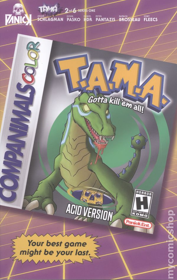 Limited 1 for 10 Retailer Incentive Variant Cover. Written by Adam Schlagman, Doug Pasko. Art by Daniel HDR. Cover by Tony Fleecs. Following the terrifying events of the hit debut issue of T.A.M.A., Kit continues to bond with his new virtual pet–TAMA–a creature willing to do ANYTHING to protect its friend. But TAMAs not just digital, it can miraculously interact with the real world… with murderous results. As Kit struggles to move on from his dads death, how dark of a path will he and TAMA travel… especially when TAMAs own horrific history is revealed? Interior art by Daniel HDR (Masters of the Universe), This is the second in a series of video game inspired incentive B Covers by Tony Fleecs, available to purchase as a 1:10 with Cover A. 32 pages, full color. Cover price $4.99.
