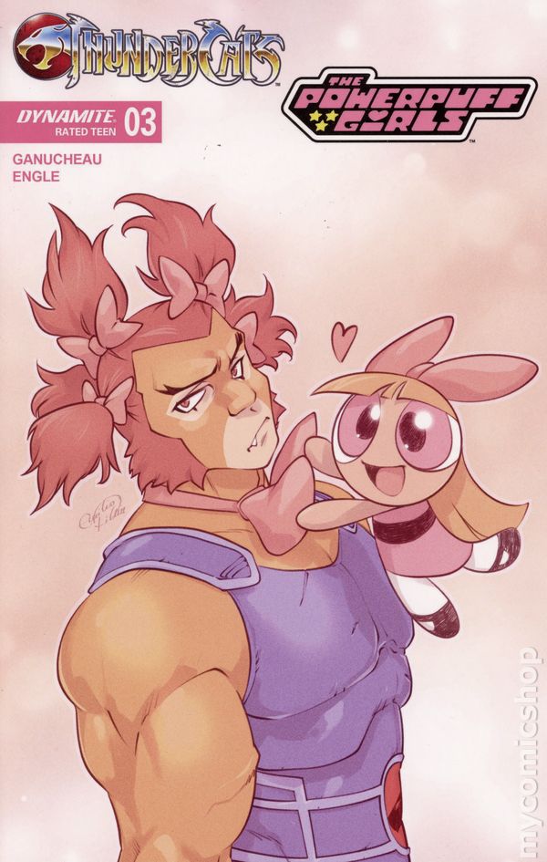 Written by Paulina Ganucheau. Art by Coleman Engle. Cover by Paulina Ganucheau. A REAL GEM OF A STORY! As Tygra, Snarf, and the Powerpuff Girls continue on their quest to help rescue the ThunderCats from the plague of mysterious crystal entities infesting Third Earth, their little fellowship is gaining more allies with each crystal-possessed adversary they defeat - but the strain is wearing on the three Titans of Townsville, who don't have their accustomed powers to fall back on. Fortunately, they've just been joined by a newly liberated Cheetara, who provides a much-needed boost to morale just as the party enters the beautiful but treacherous Crystal Canyon. What they find there takes everyone by surprise - especially Blossom, Bubbles, and Buttercup, who have probably never even heard of the Lunateks! Flawless comic book diamonds PAULINA GANUCHEAU and COLEMAN ENGLE show off their creative facets in ThunderCats/The Powerpuff Girls #3 - surrounded by cushion-cut covers from GANUCHEAU and ENGLE as well as CORAN KIZER STONE, SAOWEE, and NICOLETTA BALDARI! 32 pages, full color. Rated T Cover price $4.99.
