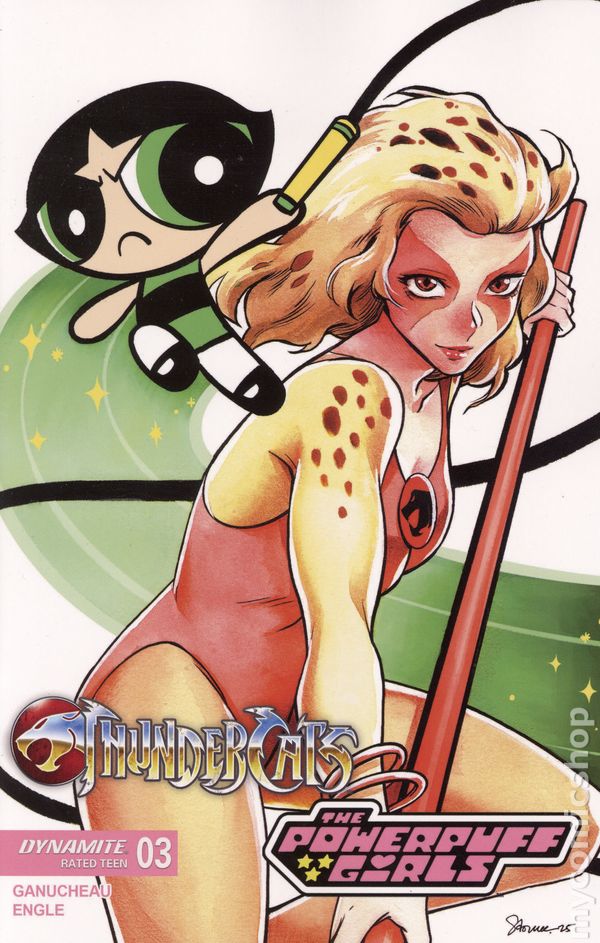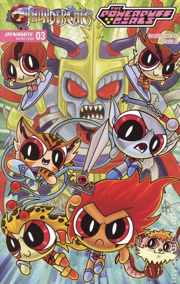 Written by Paulina Ganucheau. Art and Cover by Coleman Engle. A REAL GEM OF A STORY! As Tygra, Snarf, and the Powerpuff Girls continue on their quest to help rescue the ThunderCats from the plague of mysterious crystal entities infesting Third Earth, their little fellowship is gaining more allies with each crystal-possessed adversary they defeat - but the strain is wearing on the three Titans of Townsville, who don't have their accustomed powers to fall back on. Fortunately, they've just been joined by a newly liberated Cheetara, who provides a much-needed boost to morale just as the party enters the beautiful but treacherous Crystal Canyon. What they find there takes everyone by surprise - especially Blossom, Bubbles, and Buttercup, who have probably never even heard of the Lunateks! Flawless comic book diamonds PAULINA GANUCHEAU and COLEMAN ENGLE show off their creative facets in ThunderCats/The Powerpuff Girls #3 - surrounded by cushion-cut covers from GANUCHEAU and ENGLE as well as CORAN KIZER STONE, SAOWEE, and NICOLETTA BALDARI! 32 pages, full color. Rated T Cover price $4.99.