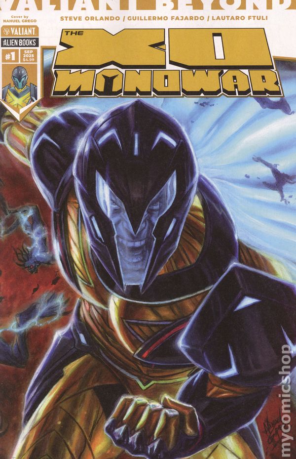Written by Steve Orlando. Art by Guillermo Fajardo. Cover by Nahuel Grego. A NEW ERA OF SUPERHERO STORYTELLING BEGINS HERE! Designed as the ULTIMATE jumping-on point, the Valiant Beyond line of comics are ABSOLUTE must-reads that will ENERGIZE your love for superheroes! The mighty Aric of Dacia, aka X-O Manowar, traverses a deadly wasteland filled with mutated horrors in a search for honor in this CAN'T-MISS debut issue from GLAAD award nominated writer Steve Orlando (Avengers Assemble) and superstar artist Guillermo Fajardo (RESURGENCE)! Aric's strength and resilience are put to the test when he comes to the defense of a family under siege from a mysterious gang known as the Earthborn. Aric finds himself aligned with a rebel group which puts him firmly in the crosshairs of the Earthborn's leader Typhon. Can Aric survive his journey across the Red Steppe? Get locked and loaded for a four-part adventure with an all-new 28 page debut issue available at a special introductory price. It's X-O Manowar like you've never seen him before! 28 Pgs, FC, M. Cover price $4.99.