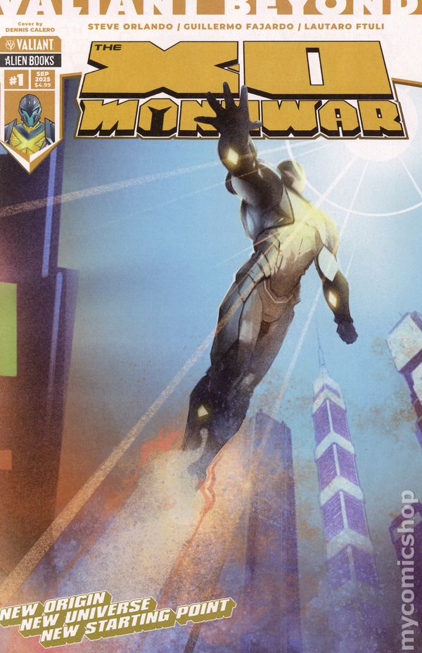 Written by Steve Orlando. Art by Guillermo Fajardo. Cover by Dennis Calero. A NEW ERA OF SUPERHERO STORYTELLING BEGINS HERE! Designed as the ULTIMATE jumping-on point, the Valiant Beyond line of comics are ABSOLUTE must-reads that will ENERGIZE your love for superheroes! The mighty Aric of Dacia, aka X-O Manowar, traverses a deadly wasteland filled with mutated horrors in a search for honor in this CAN'T-MISS debut issue from GLAAD award nominated writer Steve Orlando (Avengers Assemble) and superstar artist Guillermo Fajardo (RESURGENCE)! Aric's strength and resilience are put to the test when he comes to the defense of a family under siege from a mysterious gang known as the Earthborn. Aric finds himself aligned with a rebel group which puts him firmly in the crosshairs of the Earthborn's leader Typhon. Can Aric survive his journey across the Red Steppe? Get locked and loaded for a four-part adventure with an all-new 28 page debut issue available at a special introductory price. It's X-O Manowar like you've never seen him before! 28 Pgs, FC, M. Cover price $4.99.