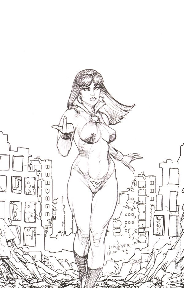 Limited 1 for 15 Retailer Incentive Variant Cover. Written by Christopher Priest. Art by Ergun Gunduz. Cover by Joseph Michael Linsner. DARKNESS CLOSES IN! In an all-too-possible future following a global apocalypse, a vengeful Vampirella seizes power and imposes a crushing totalitarian order over the entire Earth - leaving her son Cicero with no other choice but to turn to evil to stop her. Meanwhile, in the foreboding present, a cyberpunk Baron Von Kreist arrives from the future, hell-bent on preventing Cicero from disrupting the coming dark future - by any means necessary! 32 pages, full color. Rated T+ Cover price $4.99.
