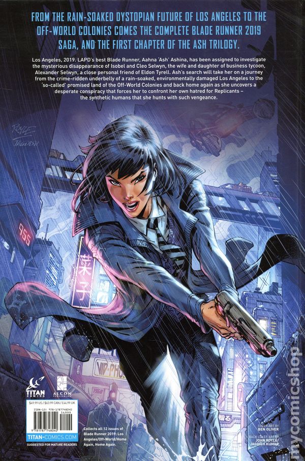 1st printing. Collects Blade Runner 2019 (2019 Titan) #1-12 and Blade Runner (2020 Titan) FCBD #2019. Written by Michael Green and Michael Johnson. Art by Andres Guinaldo. Cover by Christian Ward. Back Cover by John Royle. Omnibus edition of the critically acclaimed series! An in canon comic series set in the world of Blade Runner - co-written by Michael Green, the co-screenwriter of Blade Runner 2049. LAPD's best Blade Runner and detective, Aahna 'Ash' Ashina, has been assigned to investigate the mysterious disappearance of Isobel and Cleo Selwyn, the wife and daughter of business tycoon, Alexander Selwyn, a close personal friend of Eldon Tyrell. Hardcover, 7-in. x 11-in., 336 pages, full color. Cover price $49.99.