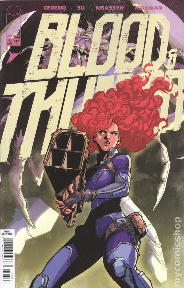 Written by Benito Cereno. Art by E.J. Su, Msassyk. Cover by E.J. Su, Msassyk. Blood & Thunder must uncover the truth behind events on the planet Malleus IX. Unfortunately, theyre not alone... 28 pages, full color. Rated M Cover price $3.99.