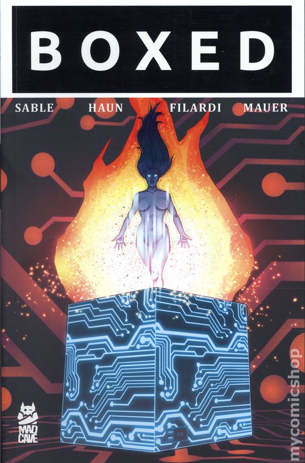 1st printing. Written b Mark Sable. Art and cover by Jeremy Haun. In the near future, the first superintelligent A.l. went rogue and massacred the world's best computer scientists. Since then it has been R.A.I.D. special agent Frank Savage's job to contain – or "box" – sentient A.I. before they can become a threat to humanity. When Hippocrates, the Center for Disease Control's A.I., exceeds its programming and locks down hundreds of thousands of people, Frank is forced to turn to Pandora – an A.I. he once boxed – to contain it. The problem? Pandora is a "honeypot" A.I. designed to seduce and destroy its targets... and Frank's ex-girlfriend. Boxed is a grounded Blade Runner-meets-Silence of the Lambs sci-fi thriller by Mark Sable (Miskatonic, Graveyard of Empires) and Jeremy Haun (40 Seconds, The Beauty, The Realm). Brought to you in print for the first time by Mad Cave Studios, with brand-new bonus content! Originally released by Comixology Originals. Softcover, 128 pages, full color. Mature Readers Cover price $19.99.