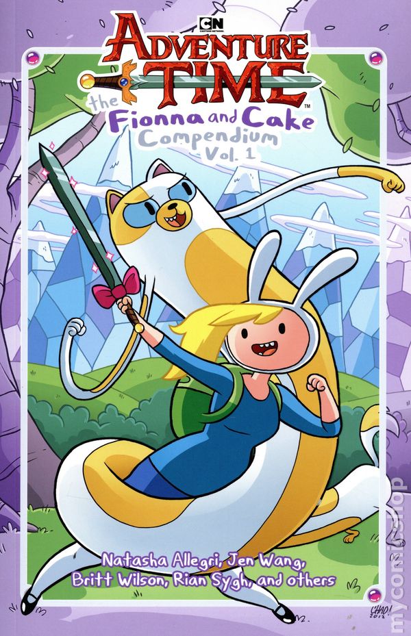 Volume 1 - 2nd and later printings. Written by Natasha Allegri, Jen Wang, ND Stevenson, Lucy Knisley, and Kate Leth. Art by Natasha Allegri, Betty Liang, Britt Wilson, Rian Sygh, ND Stevenson, Lucy Knisley, and Kate Leth. Cover by Chad Thomas. Return to the land of Ooo with this super-sized edition collecting some of Fionna and Cake's most memorable adventures together in one complete collection for the first time! In Adventure Time with Fionna & Cake, our titular heroes save a mysterious Flame Prince from the insidious clutches of the Ice Queen, rescue Prince Gumball from the insidious clutches of an enchanted flan, and recover a magical artifact from the insidious clutches of a suddenly handsome Lumpy Space Prince. That's a whole lot of insidiousness! Good thing Fionna and Cake are ready for anything! (Well, er, except maybe a handsome Lumpy Space Prince . . .) In Adventure Time with Fionna & Cake: Card Wars, Cake finds herself up against her greatest opponent yet: the Floop Master! After Lumpy Space Prince has to bow out of a Card Wars tournament with a broken wrist, Cake decides to enter in his place. She's determined to prove she's the best player out there-even if it means skipping out on hang time with her best friend! Can Fionna and Cake survive the separation? And just what the floop's with this Floop Master, anyway?! And finally, complete your Fionna and Cake collection with a trio of short stories covering everything from stolen sweaters to Lady Lemongrab herself! Softcover, 320 pages, full color. Cover price $24.99.