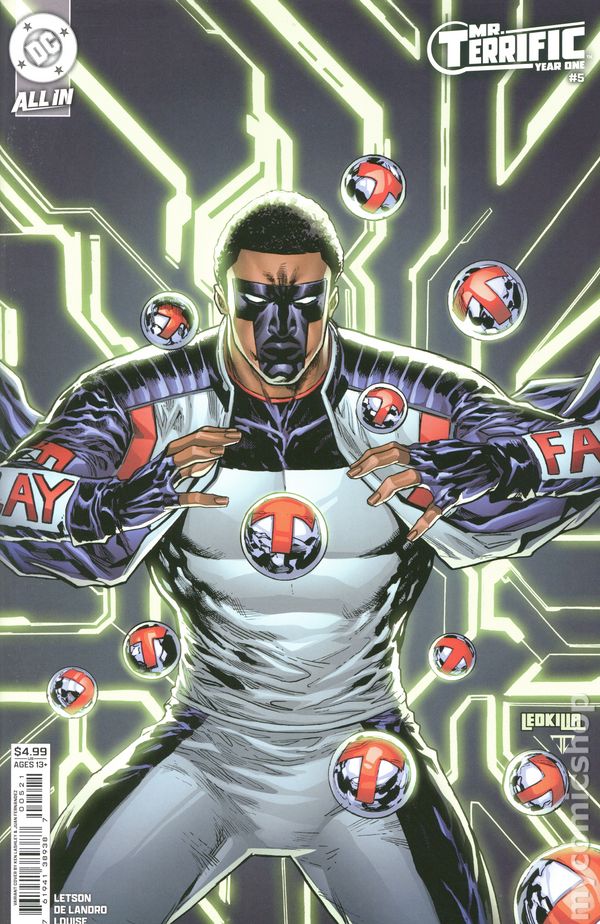 Written by Al Letson. Art by Valentine De Landro. Cover by Ken Lashley. GUEST-STARRING BLACK LIGHTNING! Maybe super-heroics are best left to those with superpowers and science best left to the scientists. At least, that's what Michael Holt tries to tell his old friend Jefferson Pierce--Black Lightning himself--as Athena Prescott's reign of terror grows into something altogether otherworldly...and threatens to bring Gateway City to its knees. Meanwhile, in the present, Mr. Terrific desperately searches for a way home, lest he remain trapped in the Palace of Eternity with a mysterious enemy who wants him dead! 28 pages, full color. Rated T+ Cover price $4.99.
