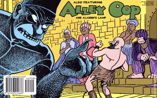 1st printing. Story and art by VT Hamlin. Alley Oop meets Aladdin and his famous genie! A daring escape on a magic carpet through the fourth dimension takes Alley to ancient Egypt, where the locals build a monument to him-a monument known as the Sphinx! Then, Alley and Ooola face the threat of Prince Pokababa! Reprinting all daily strips from 1948. Softcover, 9-in. x 8 1/2-in., 160 pages, B&W. Cover price $27.50.