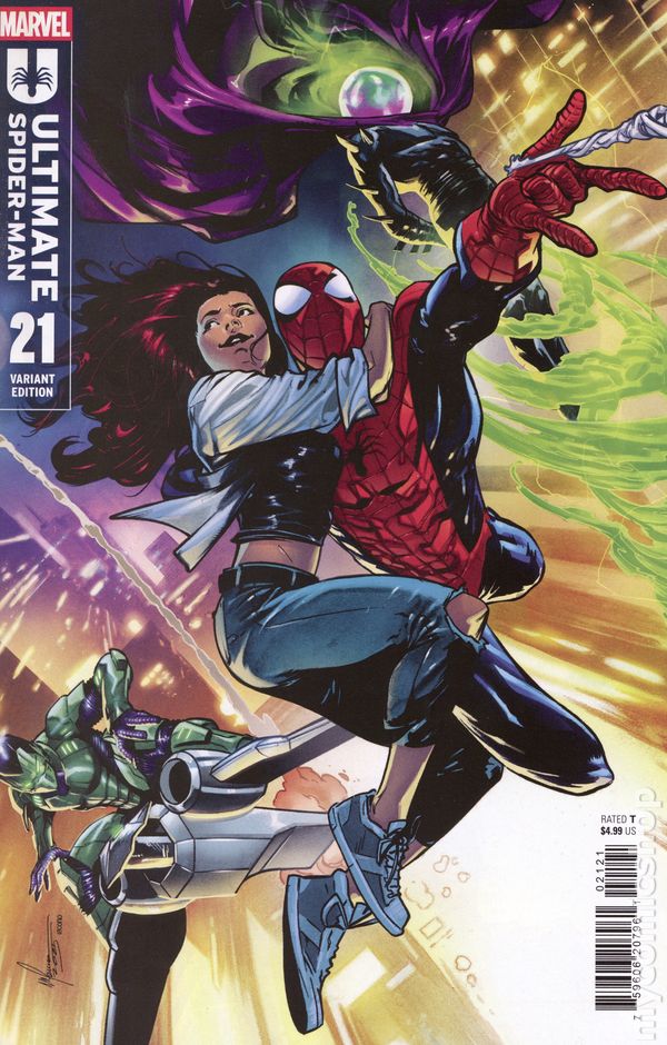 Written by Deniz Camp; Cody Ziglar. Art by Jonas Scharf. Cover by Sara Pichelli. MILES MORALES IN THE EURASIAN REPUBLIC! Miles continues his quest for Billie, even though the Maker's Council foils him at every step! What will happen when he runs into the Council's most ruthless rulers - Magik, Colossus and Omega Red? And what is the Council REALLY after with the Maker's card, anyway?! Don't miss the penultimate issue leading up to our climactic finale! 32 pages, full color. Rated T+ Cover price $4.99.