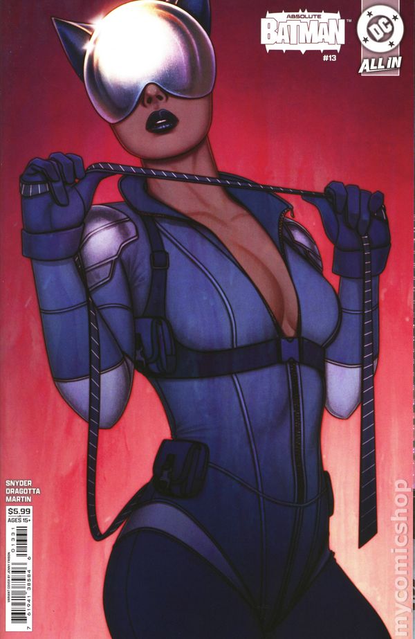 Written by Scott Snyder. Art by Nick Dragotta. Cover by Jenny Frison. ABSOLUTE CATWOMAN DEBUTS! Batmans final showdown with the monstrous Bane! Will he be able to overcome this unstoppable behemoth, or will he be trapped in Ark-M forever?! 24 pages, full color, rated 15+. Cover price $5.99.