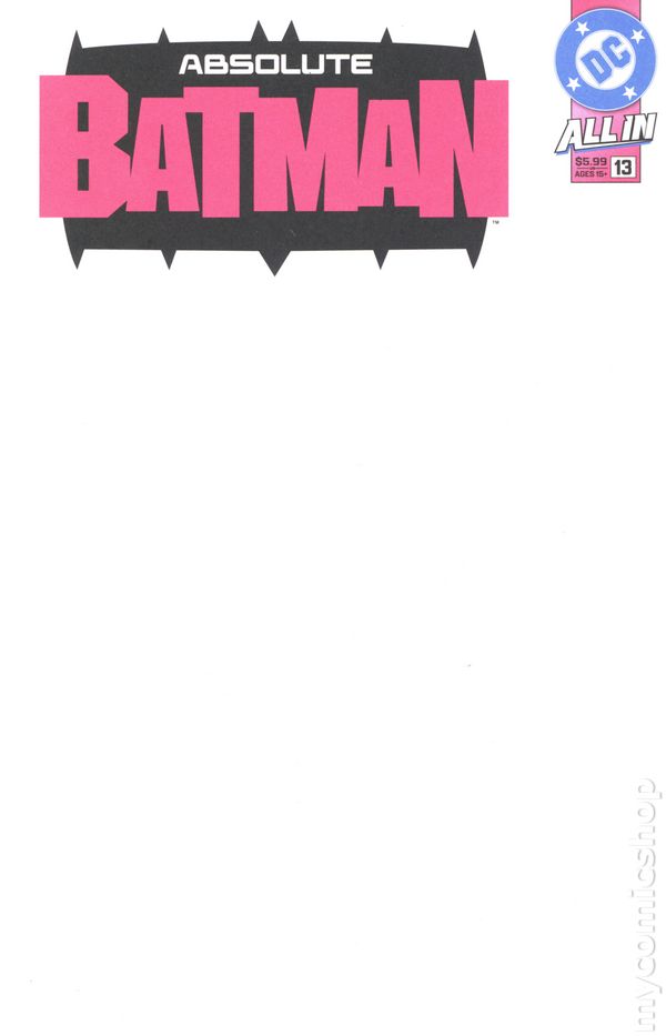 Blank Cover. Written by Al Ewing. Art by Giuseppe Camuncoli, Stefano Nesi. IT'S THE ONE-YEAR ANNIVERSARY OF THE ABSOLUTE UNIVERSE--AND ITS VILLAINS STAND UNITED! Without heroes...without protection...without restraint...there is only ABSOLUTE EVIL. The emergence of superheroes has caught the attention of the world...and its certainly caught the attention of the people who run it. Ras al Ghul, Veronica Cale, Elenore Thawne, Hector Hammond, and the mysterious Joker have worked at cross-purposes until now, but this growing threat requires new ways of thinking...and new partnerships. An insidious betrayal from within their ranks is imminent, and if they dont take action, theyll lose control of a planet that was built to be their playground! Superstars Al Ewing and Giuseppe Camuncoli join forces to kickstart the next era of Absolute Universe stories...with several shocking new character reveals, and one big unmissable twist! 30 pages, full color, rated 15+ Cover price $6.99.