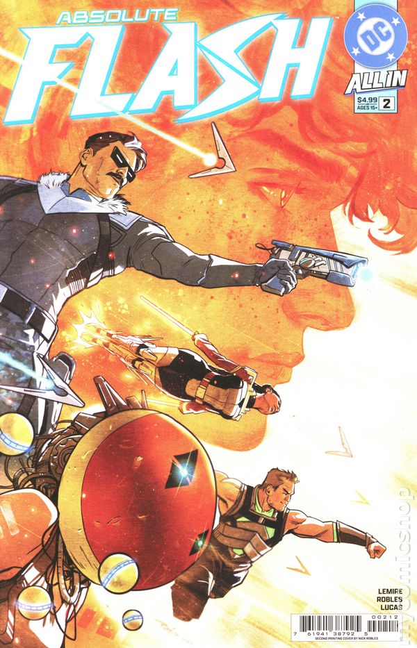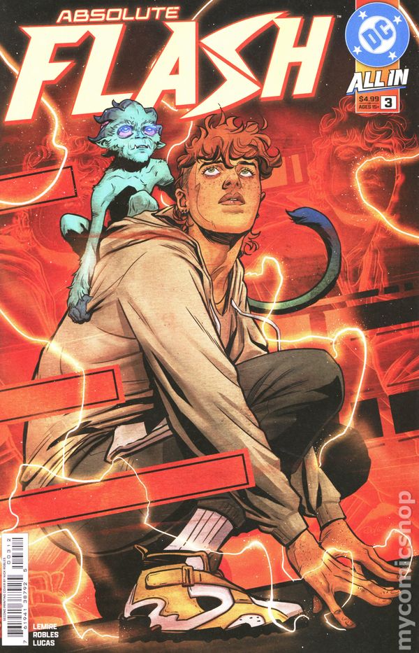 3rd Printing. Written by Jeff Lemire. Art and Cover by Nick Robles. JEFF LEMIRE AND NICK ROBLES SPEED INTO THE ABSOLUTE UNIVERSE! Without the mentor...without the family...without the Speed Force, what's left is the Absolute Scarlet Speedster! 40 pages, full color. Rated T+ Cover price $4.99.