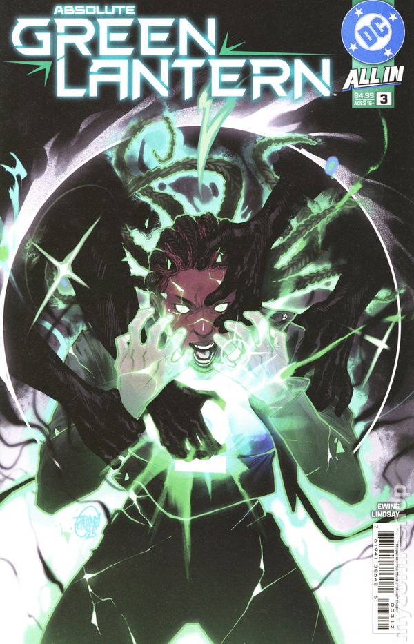 3rd Printing. Written by Al Ewing. Art by Jahnoy Lindsay. Cover by Jahnoy Lindsay. AL EWING AND JAHNOY LINDSAY GET COSMIC IN THE ABSOLUTE UNIVERSE! Without the Corps...without the ring...without the willpower, what's left is the Absolute Green Lantern! 40 pages, full color. Rated T+ Cover price $4.99.