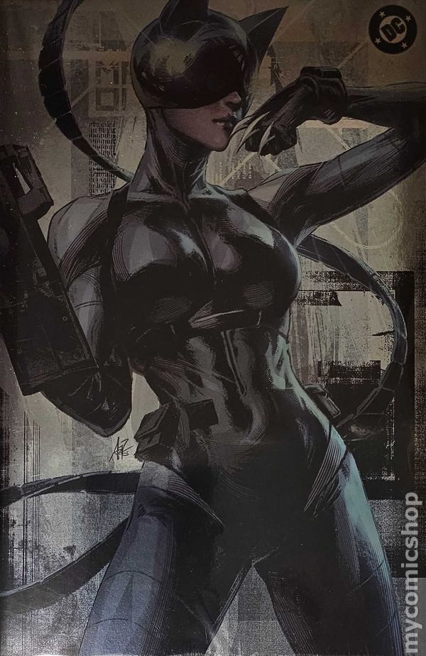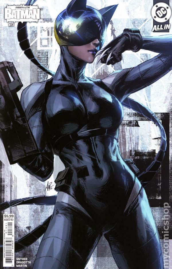 Foil Cover. Written by Scott Snyder. Art by Nick Dragotta. Cover by Stanley Artgerm Lau. ABSOLUTE CATWOMAN DEBUTS! Batmans final showdown with the monstrous Bane! Will he be able to overcome this unstoppable behemoth, or will he be trapped in Ark-M forever?! 24 pages, full color, rated 15+. Cover price $7.99.
