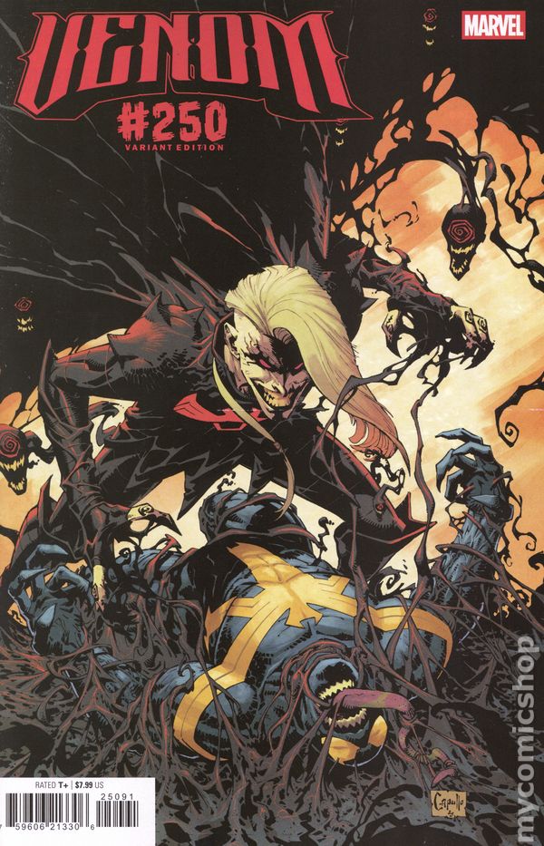 Written by Al Ewing; Charles Soule. Art by Terry Dodson; Carlos Gomez. THE RETURN OF KNULL! Venom and Mary Jane Watson are stuck with each other -- and life just isnt letting up. But at least things cant get worse... can they? While the hits keep coming on Earth, the Cult of the Void gathers in the depths of space - and only one Skrull soldier knows their terrible secret. Knull has returned... and nowhere in the galaxy is safe. Join us as Venom celebtates its legacy 250th! 56 pages, full color, rated T+. Cover price $7.99.