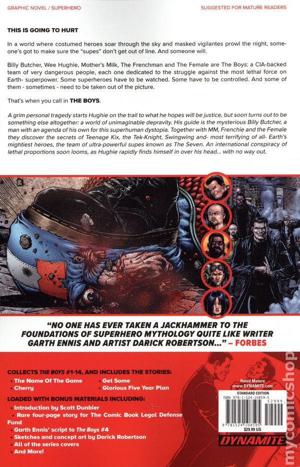 All-new printing collecting the first 14 issues of the critically acclaimed series, celebrating 20 years of The Boys! This is going to hurt! In a world where costumed heroes soar through the sky and masked vigilantes prowl the night, someone's got to make sure the "supes" don't get out of line. And someone will!