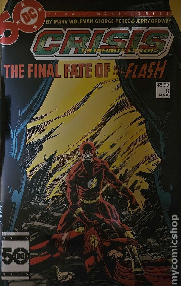 2020 Edition. Written by Marv Wolfman. Art by Jerry Ordway and George Perez. Cover by George Perez. Witness the final fate of the Flash! The key chapter of DC's Multiverse-shattering miniseries is reprinted in a new facsimile edition, timed with the 'Crisis on Infinite Earths' crossover between DC's CW TV shows. In 'A Flash of the Lightning,' one of the most famous superhero death stories in comic book history, Barry Allen risks everything to save billions-sacrificing his own life to stop the Anti-Monitor's antimatter cannon. Cover price $3.99.
