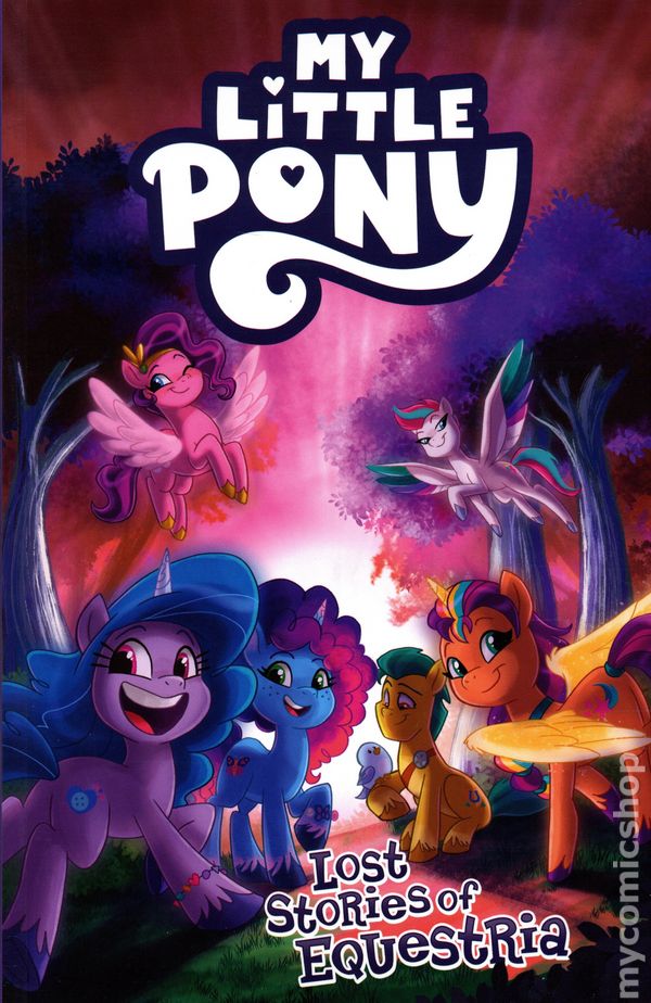 1st printing. Written byCeleste Bronfman, Robin Easter, Mary Kenney, and Casey Gilly. Art by Amy Mebberson, Robin Easter, Trish Forstner, and Abby Bulmer. Cover by Trish Forstner. Back Cover by Robin Easter. Join the Mane 5 as they explore a brand-new Equestria following the magical events of the hit Netflix movie! With magic returned to Equestria, the ponies are more united than ever-at least, until one of the Unity Crystals is stolen! Can Sunny, Izzy, Zipp, Pipp, and Hitch-plus trusty sidekick Cloudpuff-find the culprit before magic is gone for good? Find out in "The Case of the Missing Unity Crystal!" Plus, stories focusing on each Pony and their challenges, from Hitch learning it's okay to say neigh...er no, to Sunny struggling to blend...smoothies. The team also join in on the latest spooky challenge sweeping Maretime Bay and enter into the annual cook-off! All this and more! Explore a new generation of magic and friendship in this omnibus that collects all 20 issues of the comic series! Softcover, 472 pages, full color. All Ages Cover price $24.99.