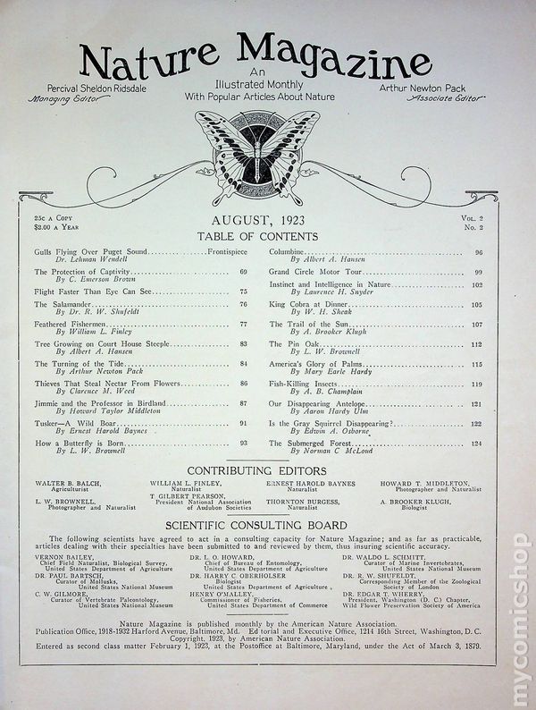 Volume 2, Issue 2 - August, 1923. Magazine published by The American Nature Association to stimulate public interest in every phase of nature and the out-doors, and is devoted to the practical conservation of the great national resources of America. Softcover, 8" x 11.5", 68 pages, B&W. Cover price $0.25.