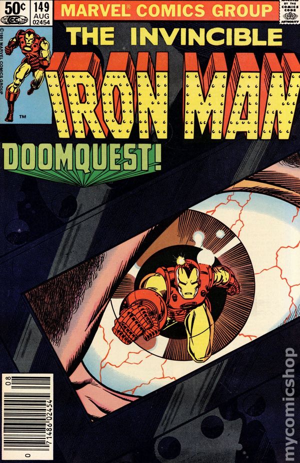 View scanNewsstand Edition. "Doomquest" Part 1 of 2. Plot by David Michelinie and Bob Layton. Script by David Michelinie. Art by John Romita Jr. (breakdowns) and Bob Layton (finishes). Cover by John Romita Jr. and Bob Layton. It's the golden avenger's first one-on-one encounter with Doctor Doom! After electrical components (manufactured by Stark International) are accidentally sold and shipped to Latveria, Tony Stark flies to the small Balkan country to get them back! However to recover S.I.'s components, Shell-Head must pay a visit to Castle Doom! In the past the invincible one always had the Avengers by his side when confronting the (deposed) monarch of Latveria! But today Iron Man will match brains, brawn, and armor with Victor Von Doom all by himself! Cameo appearance by Jim Rhodes. (Notes: Iron Man and Doctor Doom briefly clashed in Super-Villain Team-Up 9 and Avengers 156. This memorable two-part story was reprinted in 1994 in the trade paperback: Iron Man vs. Doctor Doom; and again in 2008 in the hardcover: Iron Man Doomquest.) 32 pages. Cover price $0.50.