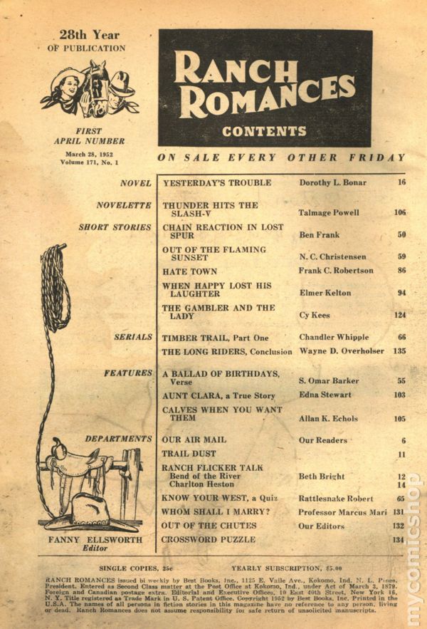 Ranch Romances (1924-1968 Clayton/Warner/Best Books/Literary Enterprises/Popular) Pulp comic books
